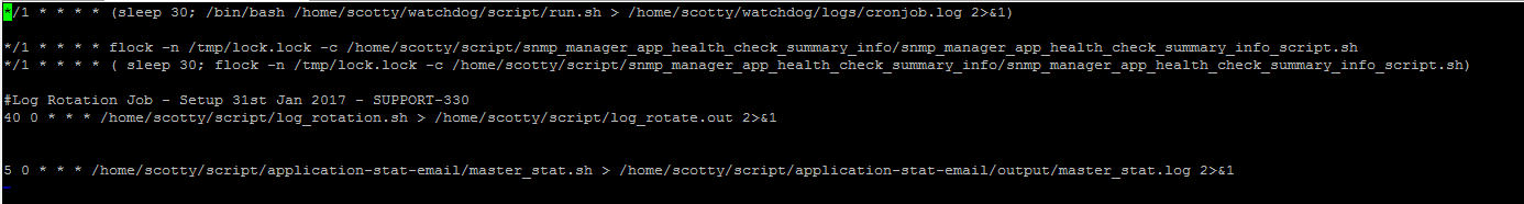 #Log Rotation Job - Setup 31st Jan 2017 - SUPPORT-330 40 0 * * * /home/scotty/script/log_rotation.sh > /home/scotty/script/log_rotate.out 2>&1