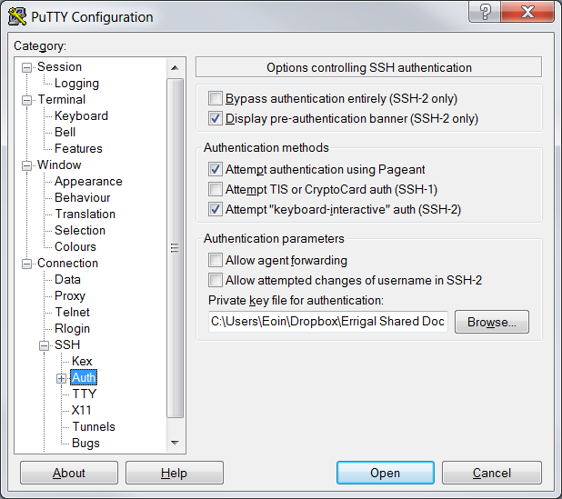 Connecting by SSH through PuTTY