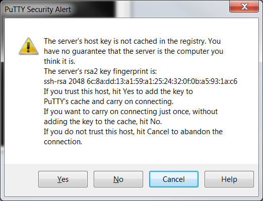 - The first time you connect to a given host, you must accept that host's rsa2 key as verification of the server's identity.