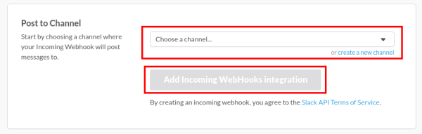 You can then configure your new webhook. Choose the default channel to post to, and then add the integration: