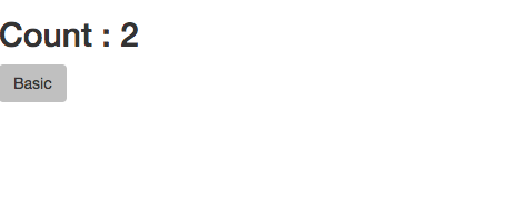 render() { return ( <div> <h2>Count : {this.state.count}</h2> <button type="button" className="btn" onClick={this.incresaseCounter.bind(this)}>Basic</button> </div> ); }