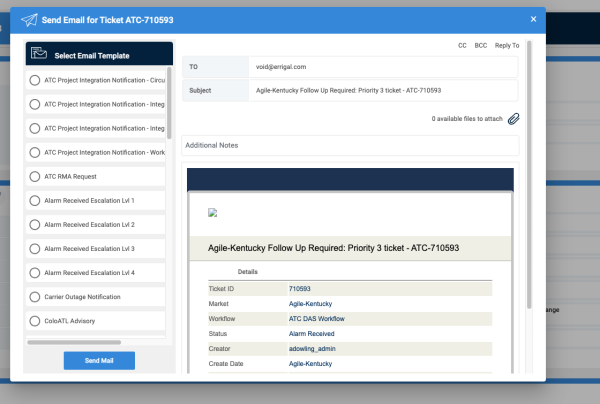 View 5: Ticket Details - Email Popup