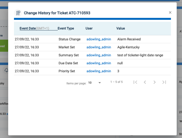View 6: Ticket Details - Ticket History Popup