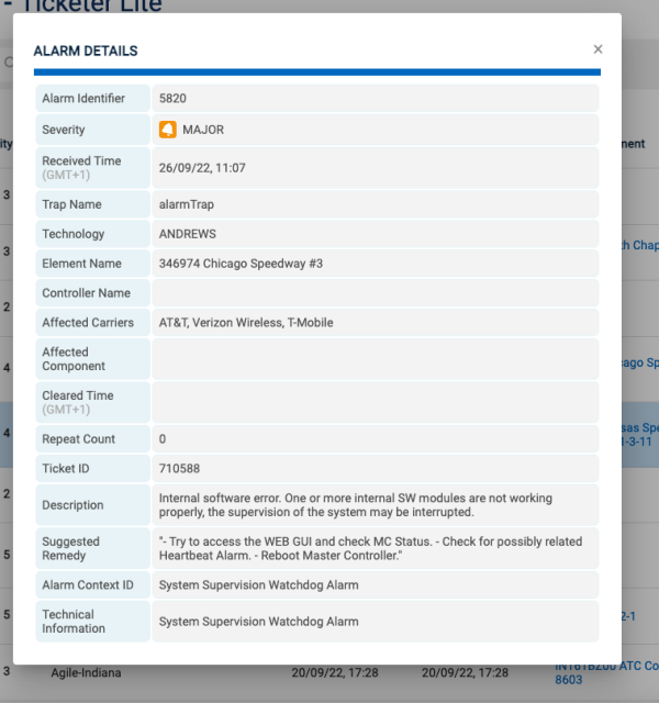 View 16: Alarm Details Pop up on ticket