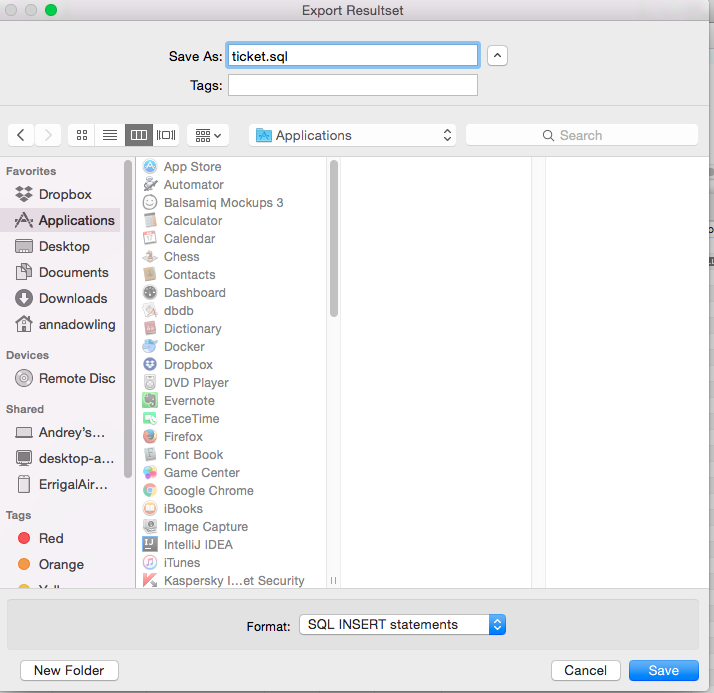 Click this and select the Format of SQL INSERT statements to save the sql export as: