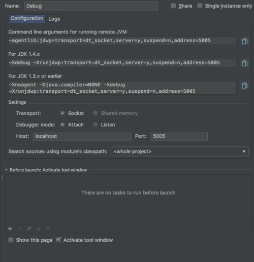 Two instances of the debug configuration cannot listen on the same port (5005)!!