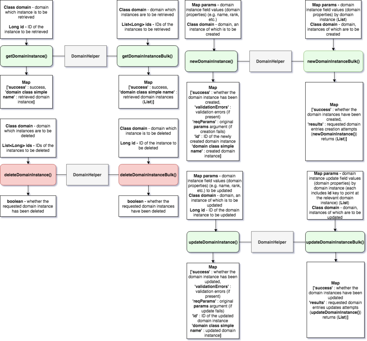 - Create a Grails service implementing the DomainInteractor trait that will provide the following CRUD methods: