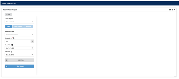 - The sidebar contains all the filters which are used for filtering ticket state transition result. Workflow Name, Threshold, Start/End Date are required fields to fill in. Any other supported optional filters can be added by Add Filter, and easily removed by the minus button behind each filter.