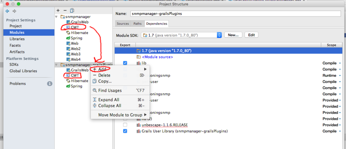 - Ensure modules (APP and GrailsPlugins) have GWT configured