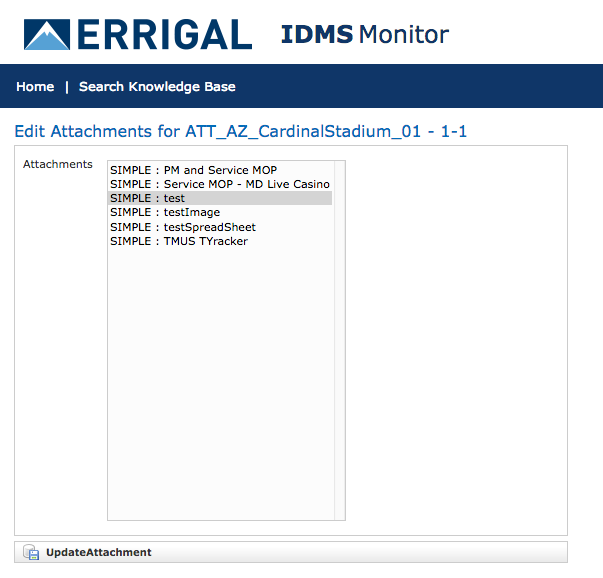 - Select the attachment that you created from the list and click UpdateAttachment: