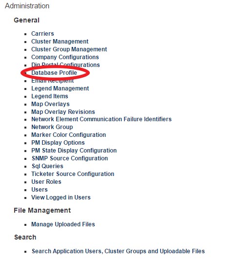 To access the Database Profile section of the NOC portal, in the admin section click Database Profile: