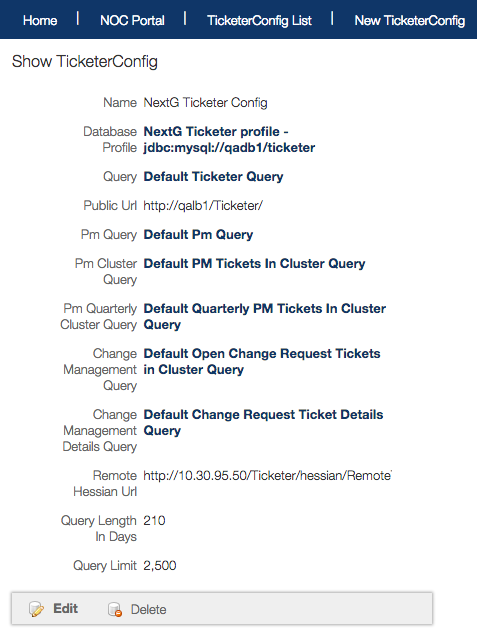 The first item to note is the Database Profile setting. This will point to the Ticketer database on a particular server depending on the customer that this is configured for. As we saw with the SNMP Configuration, the database profile settings contain login credentials, driver information and connection url endpoints.