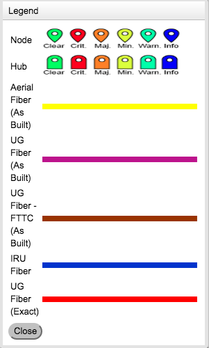The mappings to determine marker and fiber types displayed on the map can found using the legend button on the bottom panel of the main Noc Portal display page: