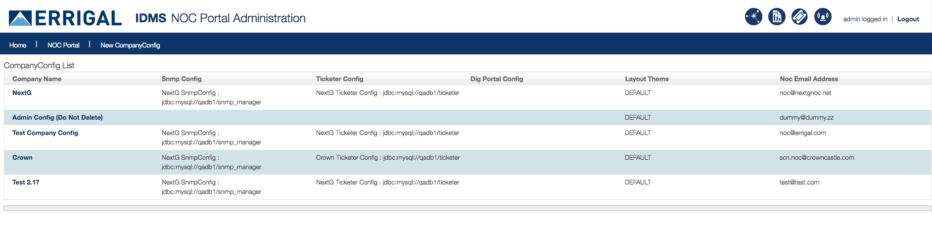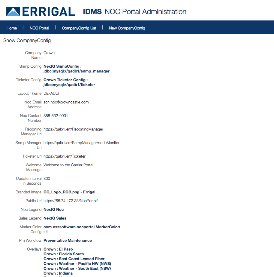 - Click on the active Company Configuration for the Noc Portal.