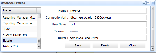 From this you can create/edit/delete database profiles.