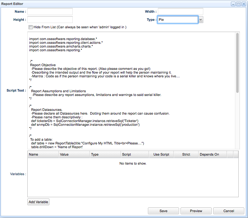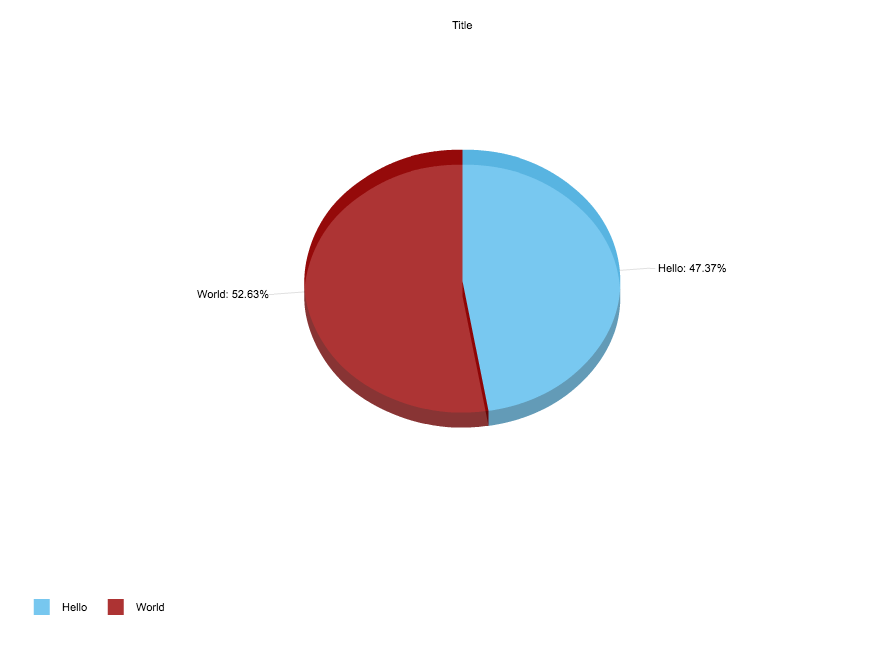 The key to pie chart is the addSlice method : pieChart.addSlice(50, [title: “World”,color:“990000”]) AND pieChart.addSlice(45, [title: “Hello”]) In this case what the Reporting Manager will do is add up all the numeric values which are the first value you pass into addSlice and then the number you entered will become a percentage of the total. Such that in our example World has a numeric value of 50 and Hello has a numeric value of 45 thus making the total 95. The percentage displayed beside World will be (50/95 * 100 )% which is about 52.6% and Hello will be (45/95 * 100 )% which is about 47.4%.