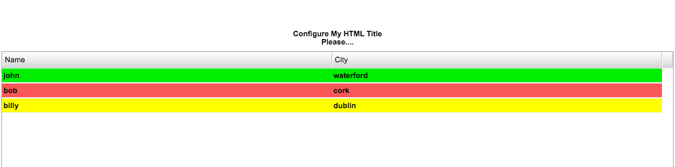 Finally the row colour can be set by using row_color as a key in the map and the desired colour (Red, Green or Yellow) as the row colour. If you don't want a row colour set the colour to be ''.