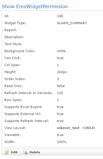 EMS Widget Permissions This section contains the list of widgets that are configured to appear in the view. Each of these widget permissions can be configured by clicking on them and updating the values accordingly (See EMS Widget Permissions Controller Section).