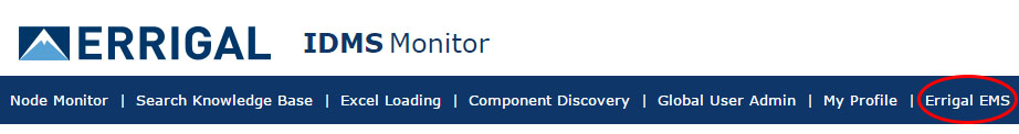 The EMS can be accessed via the SNMP Manager application by clicking on the Errigal EMS link in the top navigation menu: