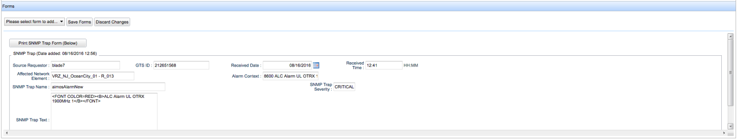 - Add a new form to the ticket, populate the form and click Save Form. Refresh the ticket to make sure the form added correctly.