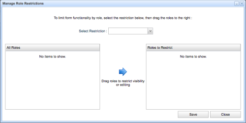 Similarly to the specific form components, role visibilities can also be set on the entire form. For the Role Visibilities there are two options: Hide Form and Editable. Hide form means that only users with the defined role can see the form (they must also have the market visibility as well) and Editable means that only users with that role can edit the form.