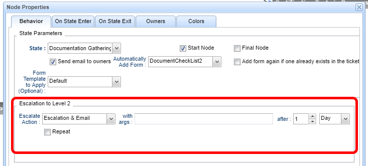 In this context the email escalation refers to the following section of the workflow manager: