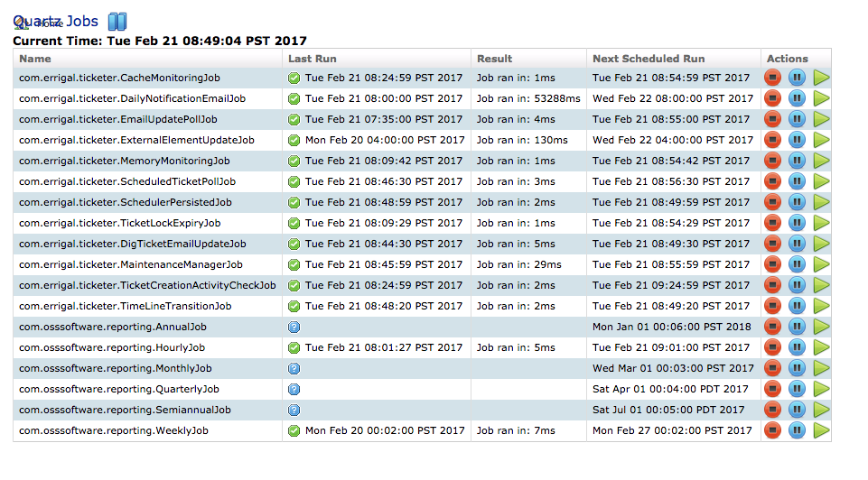 The job itself is run from the quartz page in the Ticketer under the name TicketCreationActivityCheckJob. It runs on an hourly basis as demonstrated below: