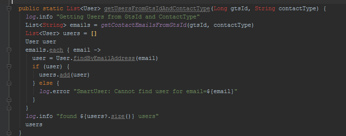 I opened up the ticketer code base and searched for “getUsersFromGtsIdAndContactType” which brought me here: