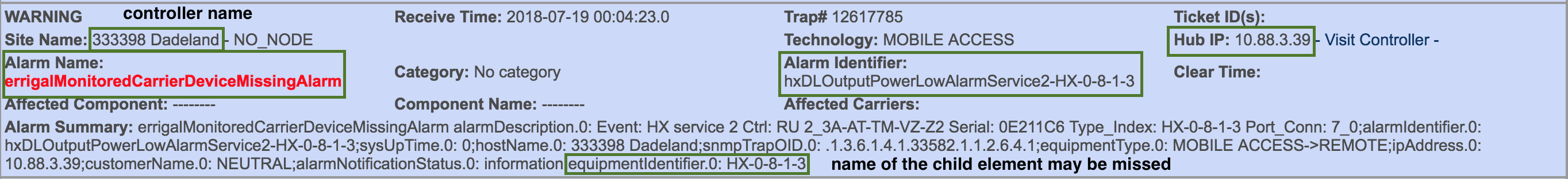 - Get the controller name and child element name(equipmentIdentifier) on the General Trap Summary