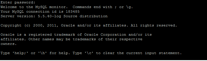 The following is an example of what your screen should look like once you have logged in. The command itself has been omitted for security’s sake: