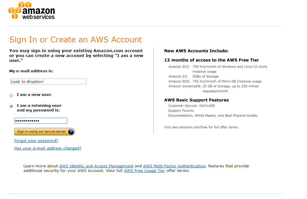 To begin, we need to log into our AWS account. You should be looking at the following screen: