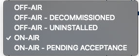 Table entries that are 'PENDING ACCEPTANCE' - ON-AIR can be updated to 'ON-AIR - PENDING ACCEPTANCE'.