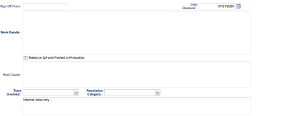 - Notes - When the Support Page is deployed to all customers the description field will be set to read-only. When a ticket is triaged this field is where Operation can add relevant notes related to the initial findings.