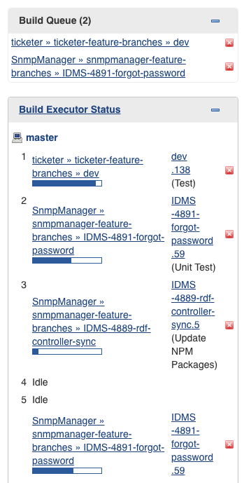 * If you don't see your build running in this queue, you can manually start a build yourself through Jenkins.