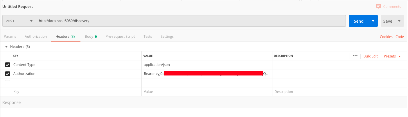 * When you have filled in the specific information in the JSON payload, click send and the request should be processed by your local RDF Agent.