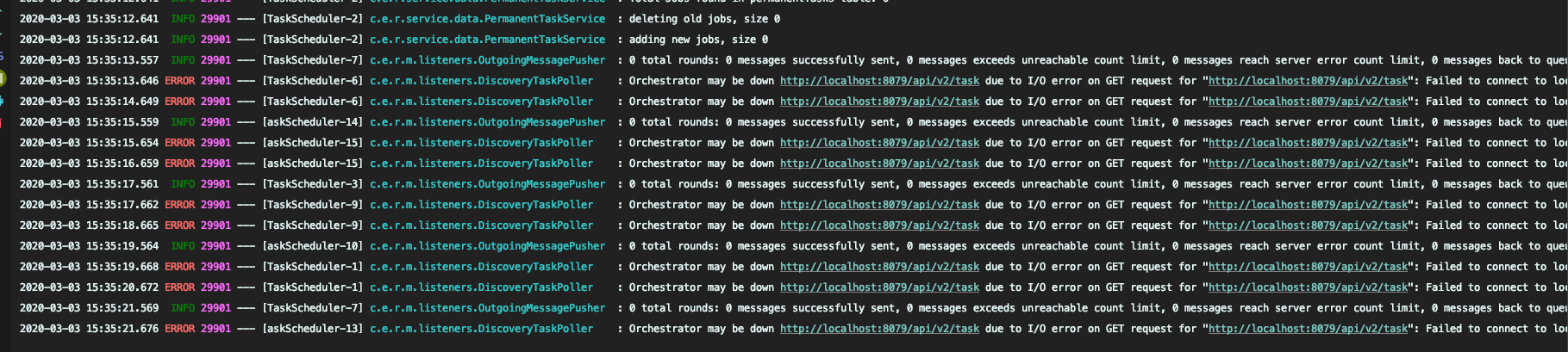 * If your local RDF Agent is running successfully you will see a recurring message saying the Orchestrator is down, see below.
