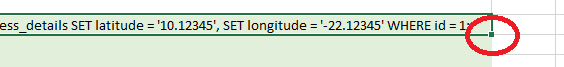 - So now we have an sql statement to populate with data based on each row. Click into this cell with the SQL query and wrap it around