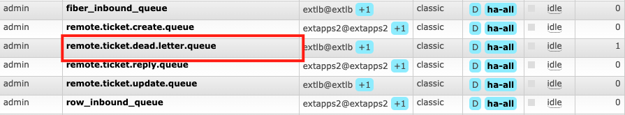 Then navigate to the remote.ticket.dead.letter.queue. The queue might be at the bottom of the multi page list, use the search bar if necessary.